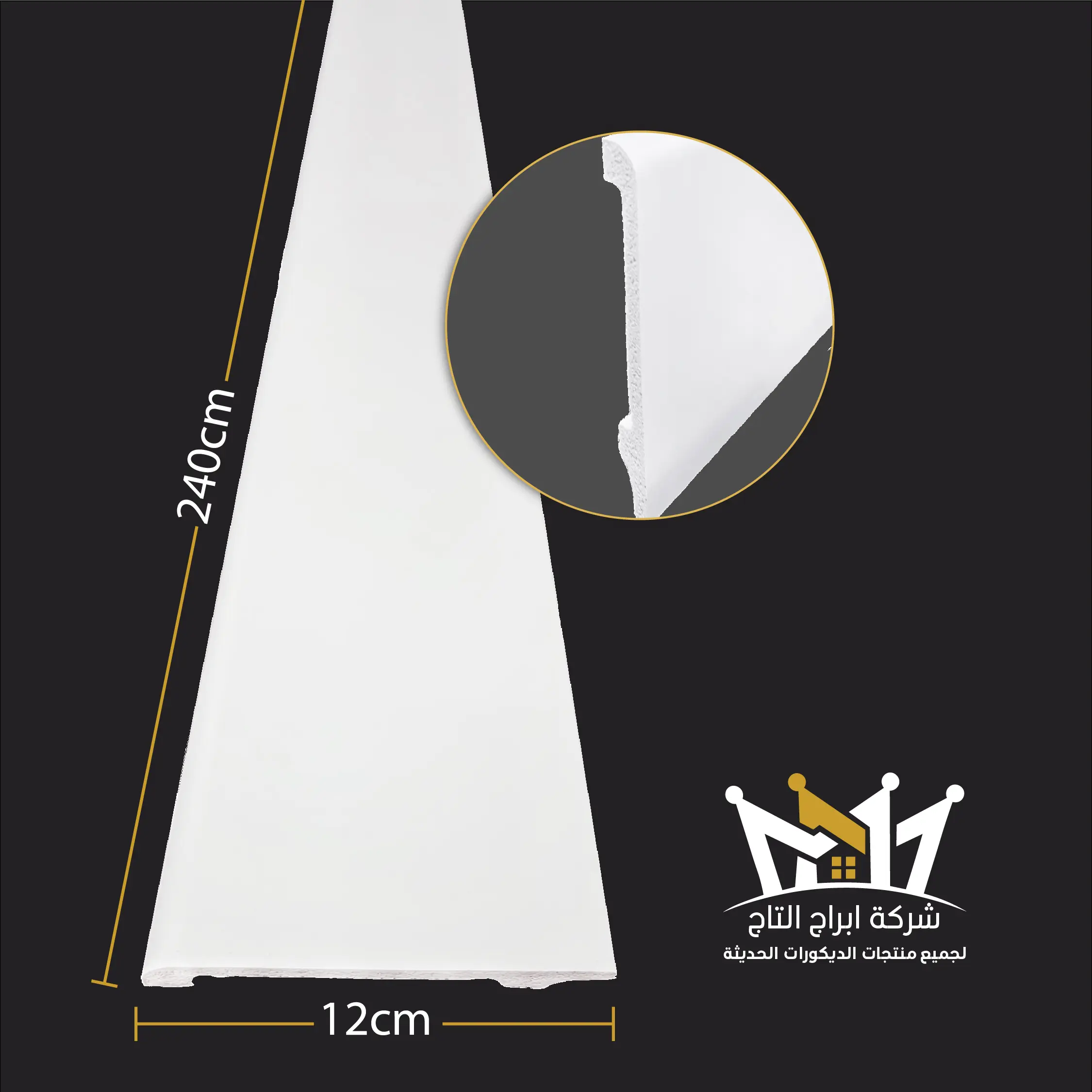 نعلة فايبر بيضاء عالية الجودة بعرض 12 سم وطول 2.4 متر موديل AT-120D، بتصميم أنيق ونظيف يمنح التشطيبات الداخلية لمسة نهائية راقية ومشرقة.