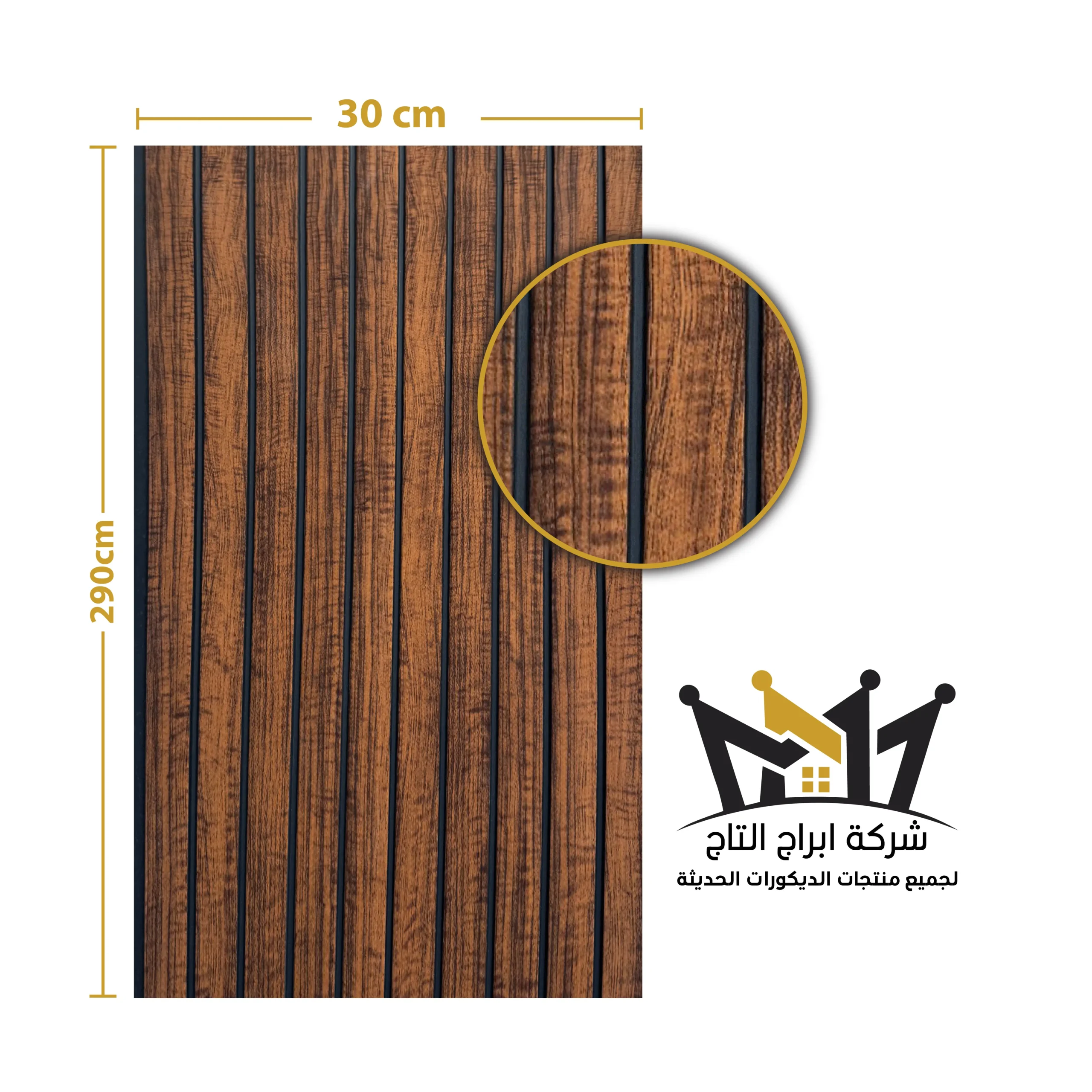 ألواح بديل الخشب الداخلي عالية الجودة بمقاس عرض 30 سم × طول 290 سم، مصممة لتمنح مظهراً طبيعياً يحاكي الخشب الحقيقي مع لمسة عصرية أنيقة.