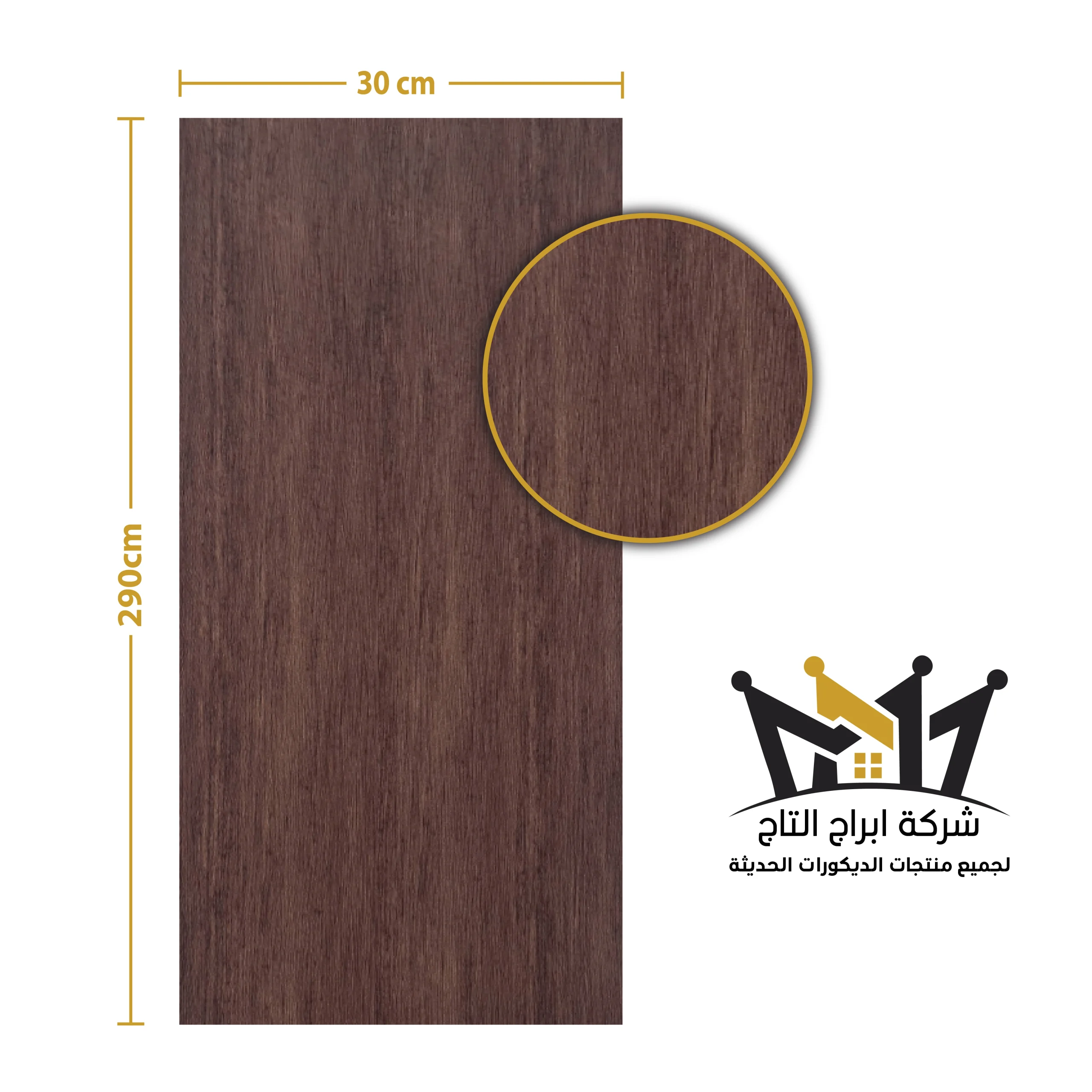ألواح بديل الخشب الداخلي عالية الجودة بمقاس عرض 30 سم × طول 290 سم، مصممة لتمنح مظهراً طبيعياً يحاكي الخشب الحقيقي مع لمسة عصرية أنيقة.