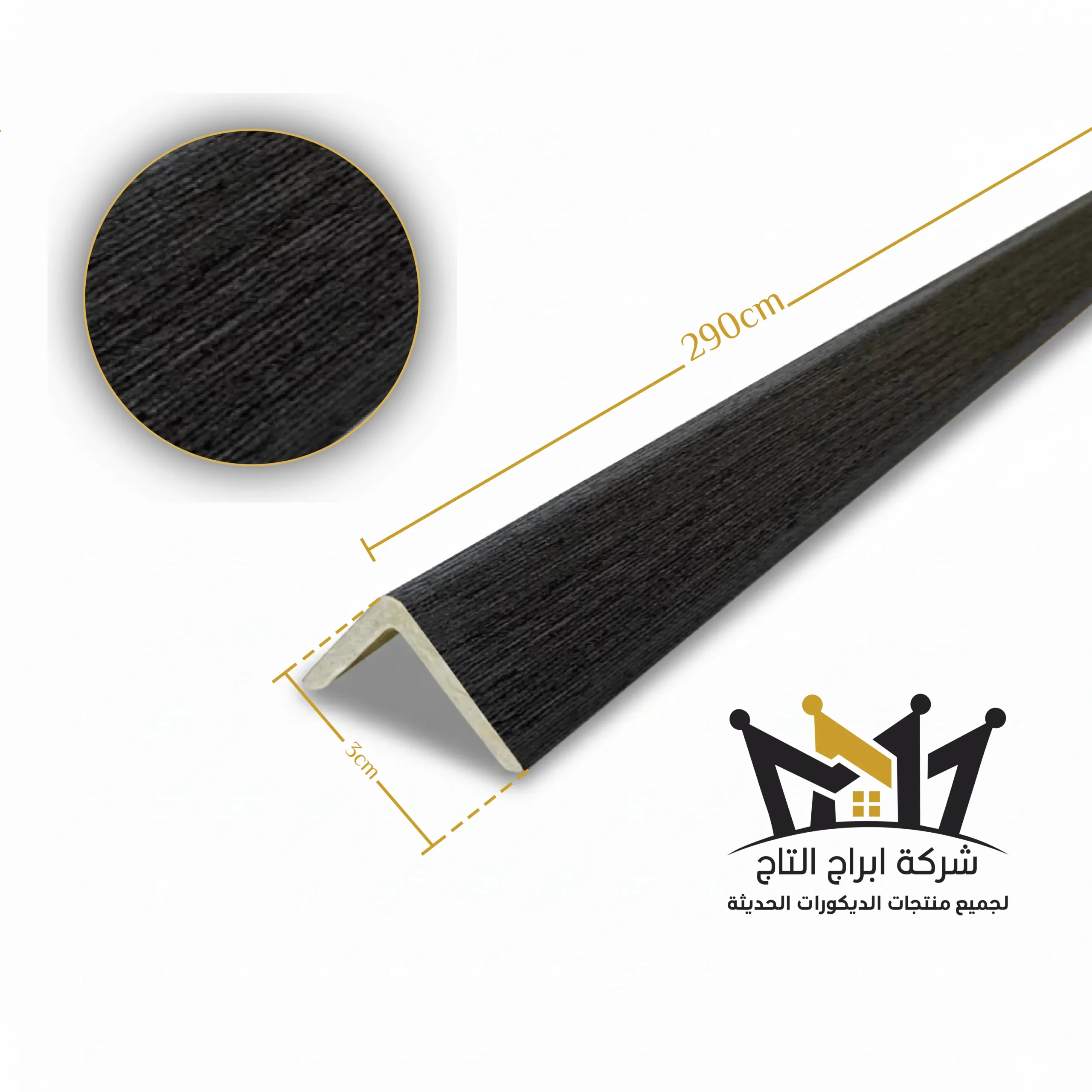 زوايا بديل الخشب الصيني موديل T057-47 بطول 290 سم ومقاس ضلع 3 سم، مصممة لتمنح الزوايا تشطيبًا نهائيًا أنيقًا ومتناسقًا مع ألواح بديل الخشب. تتميز بلون رمادي داكن بنقشة خشبية طبيعية تضيف طابعًا عصريًا ولمسة فخامة هادئة تناسب التصاميم الحديثة.